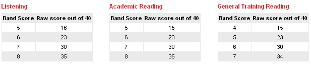 雅思听力和阅读试卷各包括40题,每答对一题得一分。考生这两部分满分的原始分均为40分,考生依据其原始分获取1-9分的等级分。
