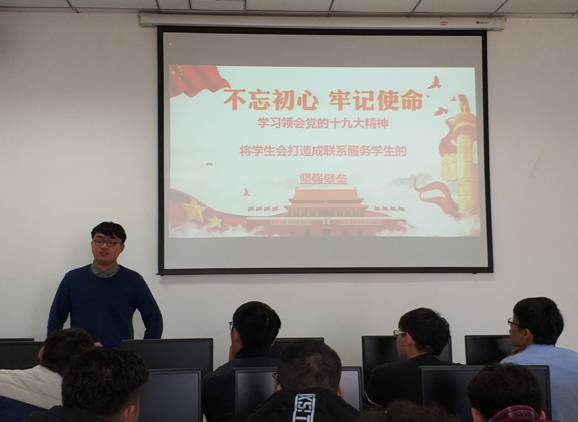 2017年12月22日上午12:00,国际教育学院学生会于图书馆523-2教室召开“学习党的十九大精神,将学生会打造成联系服务学生的坚强壁垒”学习专题会议,国际教育学院学生会全体成员参加。学生会主席孙韶聪同学主持本次会议。